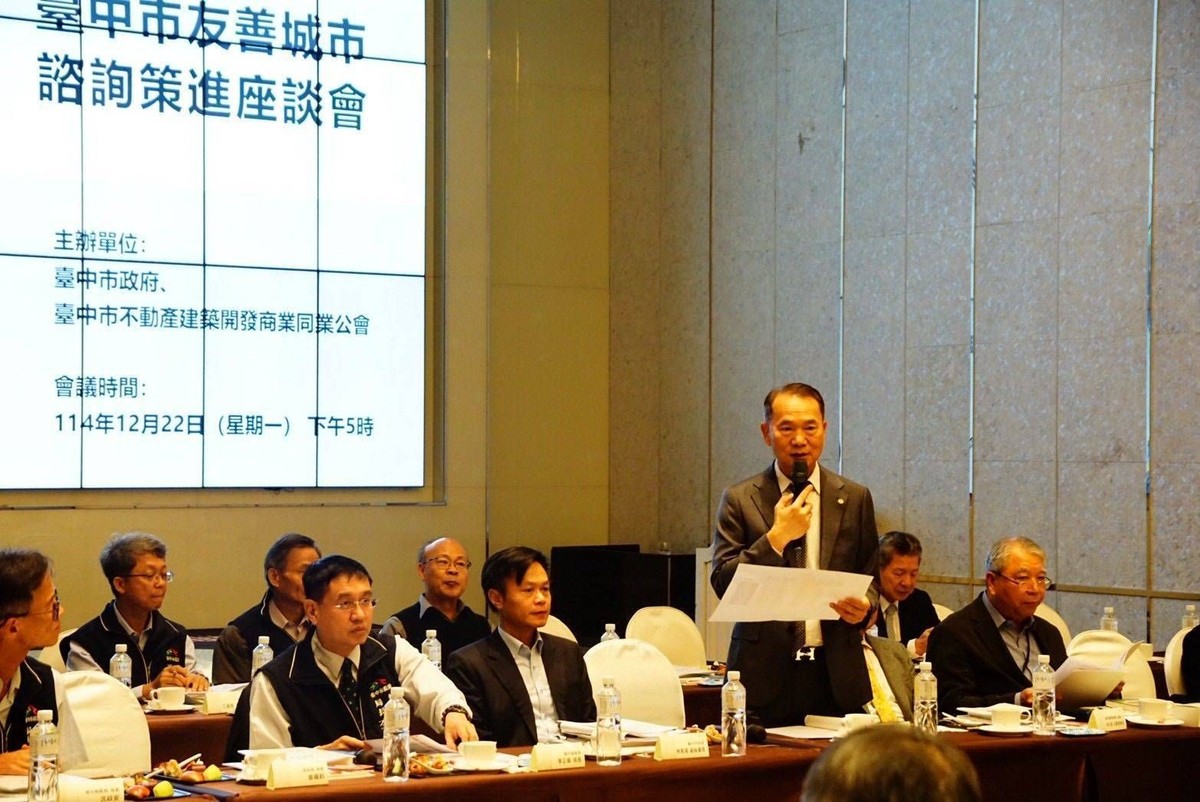 台中市政府昨(22)日與台中市不動產建築開發商業同業公會,共同舉辦「114年台中市友善城市諮詢策進座談會」,由副秘書長林育鴻代表市長盧秀燕率領市府團隊與產業界代表面對面交流,廣納各界建言,深化公私協力,共同打造宜居幸福城市。