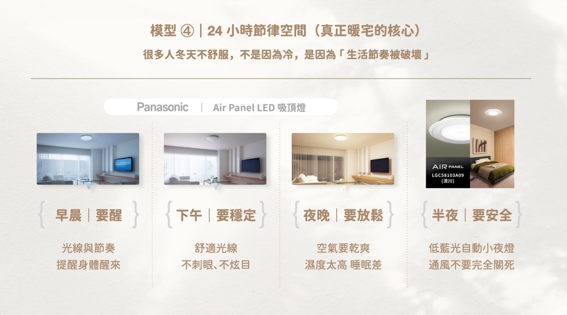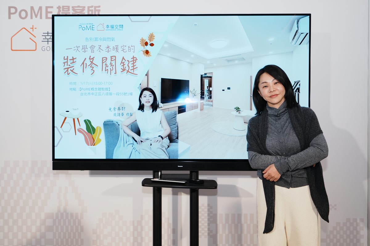 針對此,Panasonic PoME概念體驗館「PoME提案所」特別邀請一位從電子科技業背景轉職跨界室內設計卻連年屢獲日本、法國、德國、義大利多項大獎的光舍丰計周語華總監,透過「告別濕冷與悶氣:一次學會冬季暖宅的裝修關鍵」講座,結合Panasonic一站式整合,以「設計×科技×舒適生活」三位一體概念,教民眾裝修不是只有變美,而是真正變暖、變健康、變好住,把生活調回舒服的頻率,打造真正會呼吸的冬季暖宅。