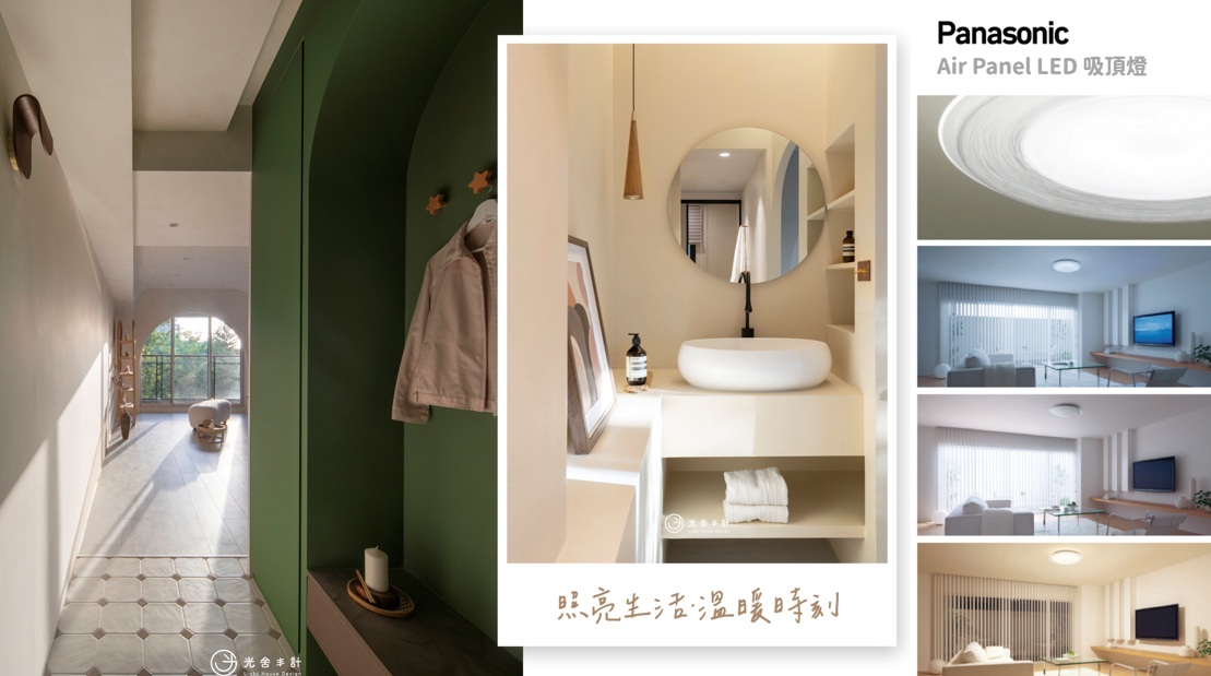 以Panasonic Air Panel LED吸頂燈為例,輕薄設計實現與天花板融合般的簡約設計,採智慧情境模式,藉由照明創造出可調整生活節奏的環境,從早晨開燈開始至夜晚關燈為止,依照設定時間自動切換照明模式。既能按氛圍去調節的燈光模式,還可模擬陽光給適合的照明模式,並能設定開關時間,夜間返家時間較晚時,或長期外出時可防止有心人士闖入。