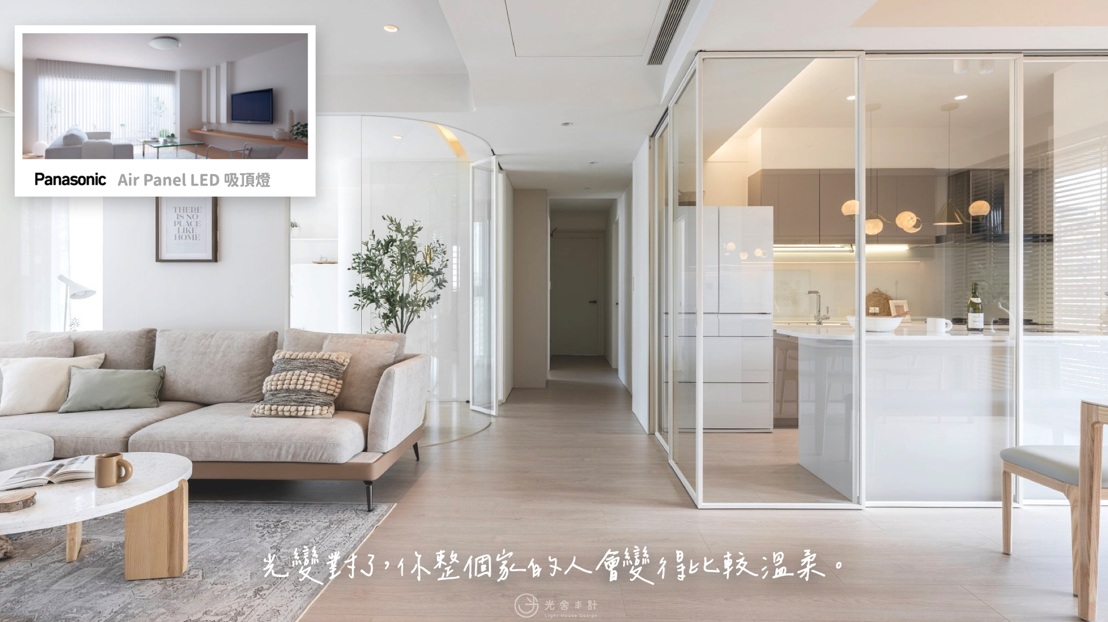 過去裝修時,大家在乎的只是亮不亮,結果白光亮得像開刀房,黃光卻黏得像古裝劇場。周語華總監表示,真正好的照明,不只是照亮,而是配合生理節律,調整整天情緒狀態:早上清爽,晚上放鬆;白天專注,夜晚安定。光不只是「看得見」,它是家裡各種場景的節奏引導者。跟著生活擺動,讓情緒、空間變得洽洽好。「光對了,整個家的人會變得比較溫柔。」她說。