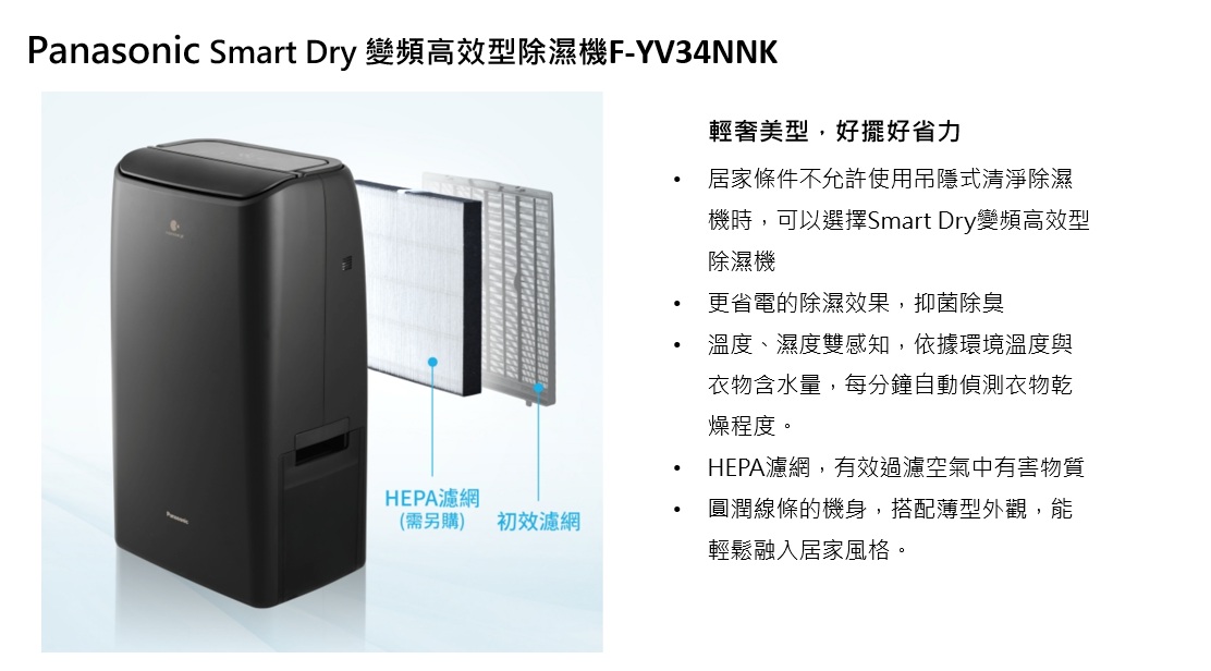【推薦商品│Panasonic Smart Dry變頻高效型除濕機 F-YV34NNK】