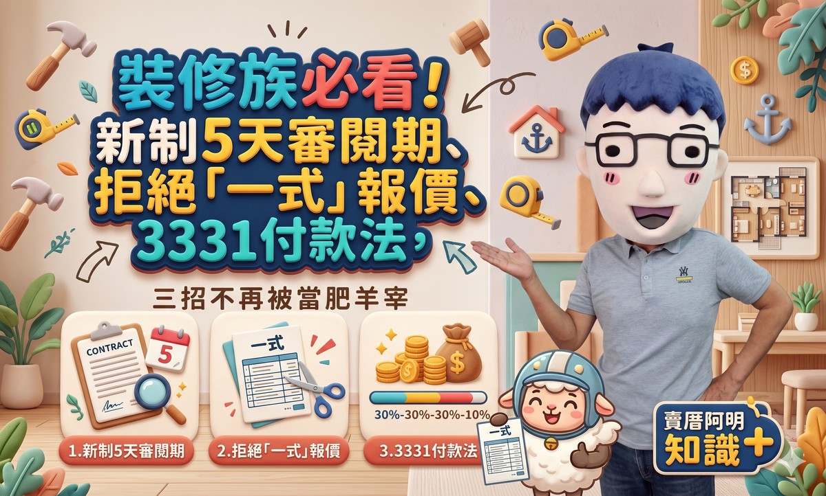 內政部國土署正在研擬「建築物室內裝修設計委託及工程承攬定型化契約」,這套新制度就是為了保護像你我這樣的消費者,不再被不肖業者當成肥羊宰。阿明今天就從消費者的角度,幫你拆解這個新制度對你的裝修之路會有什麼改變。