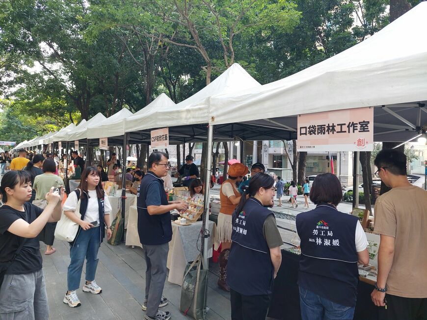 ▲ 中市府勞工局長林淑媛現場逐一探訪獲獎攤位展出。(圖/記者游穎達攝)