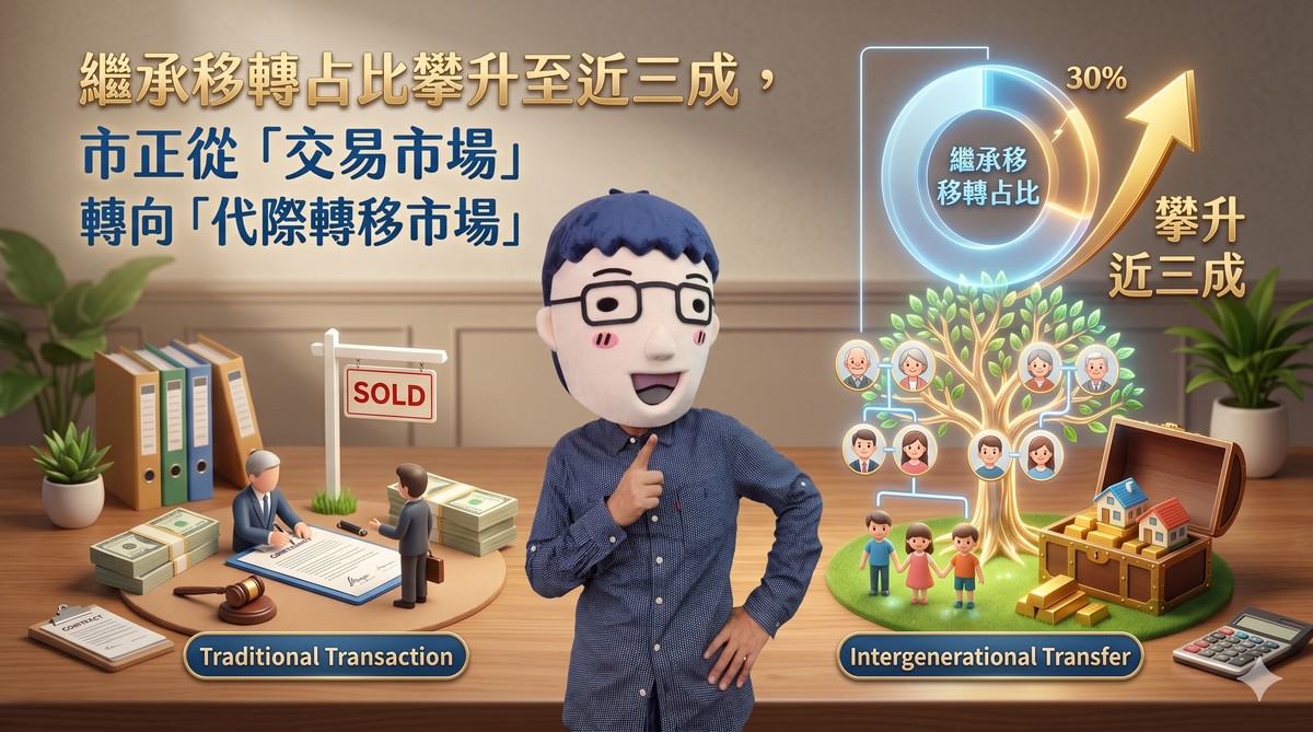 繼承移轉占比攀升至近三成,市正從「交易市場」轉向「代際轉移市場」