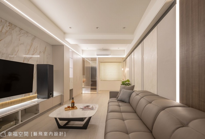 3.同時考慮整體空間的風水,客廳採用隱藏拉門的設計,化解風水上的門對門的問題。