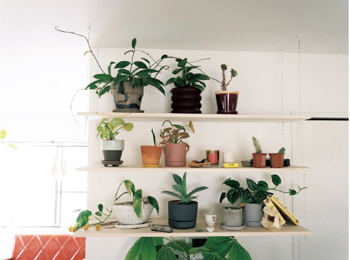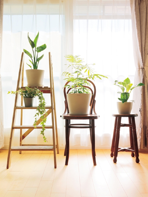 中型盆栽:可以利用小凳子或植物架等工具凸顯出高低不同的層次,以提升空間的時尚感