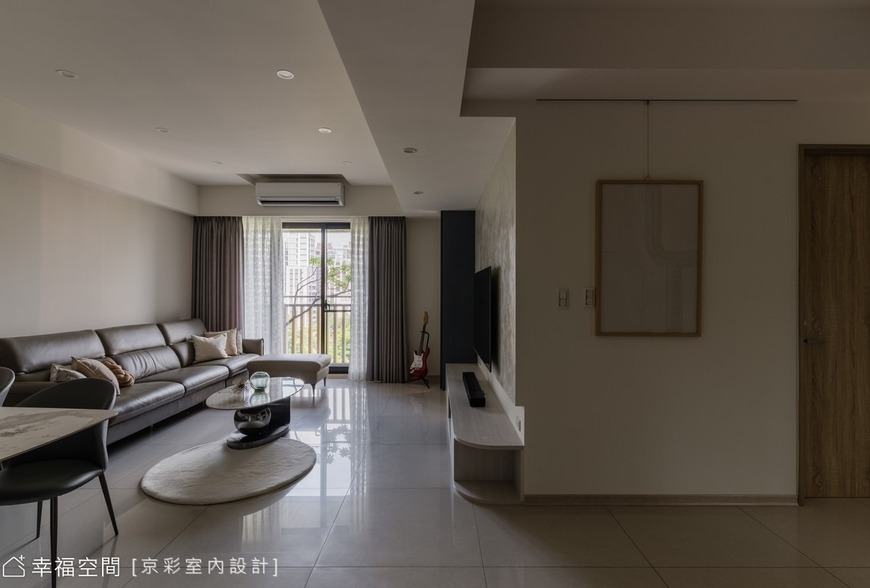 柔光、綠意悄悄沁入空間每個角落,捎來幾抹暖意,調和出濃淡合宜的溫度,滋養因繁忙工作而起皺的靈魂,注入療癒能量。京彩室內設計將屋主沉穩內斂的人格特質化作設計語彙,一筆一畫勾勒出低調靜謐的家,消融負面情緒,解放緊繃身心。