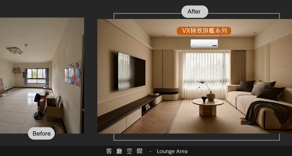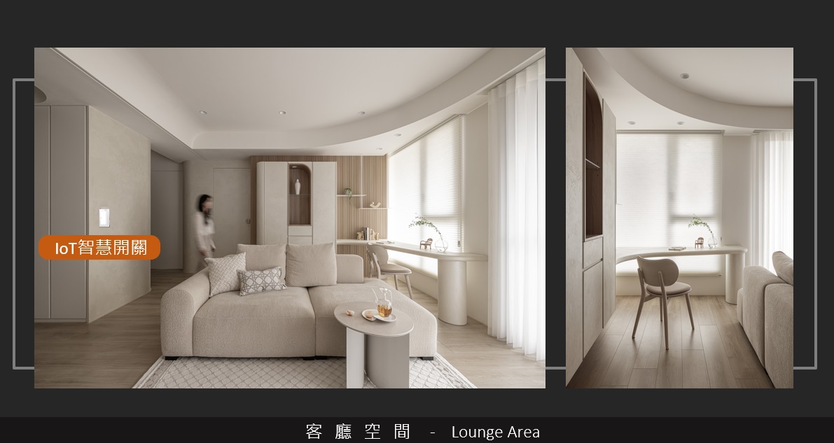 在處理完氣、水、光三大面向後,總監表示會再依據不同家庭需求,搭配適合的智慧設備,並規劃收納機能,透過專業設計手法完善居家。譬如依循屋主習慣,訂製衣櫃、層架、鞋櫃、櫥櫃;因應客戶需求協助整合照明、空調等智慧家電,讓空間效用極大化,居住空間實用、美觀又舒適。