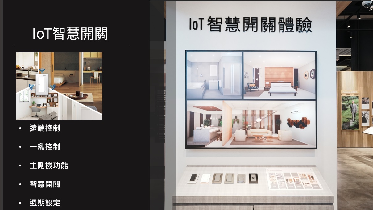 再來,方人凱總監分享了Panasonic的IoT智慧開關,就是讓家裡不用大改造,就能享受到智慧家居的便利。只要有火線、燈具負載火線、中性線,馬上就能升級成智慧開關。結合 Wi-Fi 感應、遠端控制、智慧語音聲控、一鍵控制等科技享受精采生活。