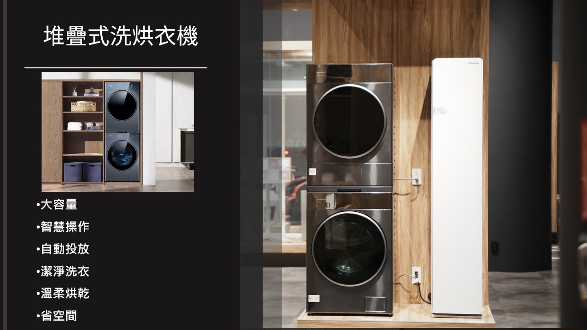 面對現今小宅化趨勢,如何有效運用有限空間坪效,聰明選用家電就變得重要。Panasoni堆疊式洗烘衣機因洗衣機和烘衣機能上下堆疊,還有拉出式層架設計,省空間的同時,使用起來非常方便。 操作方便,採用鏡面觸控面板,且支援 IoT遠端操控,手機就能控制。洗衣時會透過 AI 偵測衣量,自動投入洗劑,精準又不浪費。