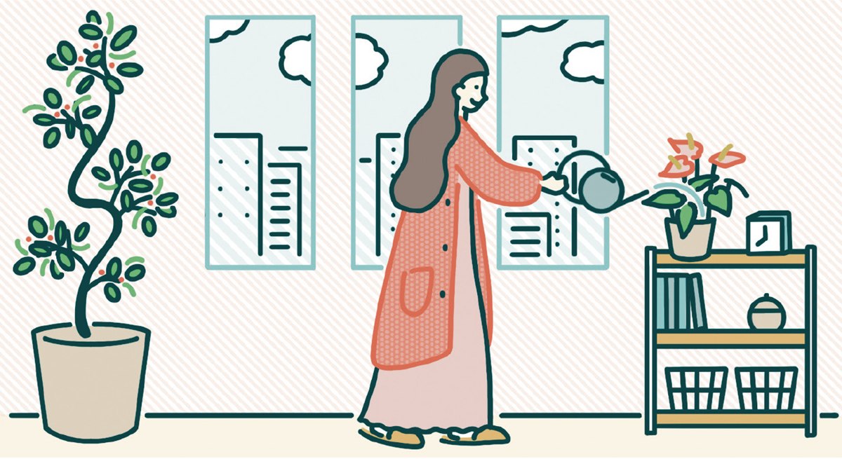 雖然室內的觀葉植物是種植在花盆中,生長空間有限,但也有方便移動的優點。你可以嘗試把植栽移到室內較為明亮的地方,讓它們像庭院植物一樣曬曬太陽,也可以移動到較通風的地方吹吹風。另外,花盆裡的土壤,也可以透過一些小技巧來模擬自然環境,像是在盆底鋪一層小石頭,再加入顆粒大小不同、專門為觀葉植物設計的培養土,這樣就能打造出接近自然狀態的團粒結構,讓根部健康地成長。在照顧家裡的觀葉植物時,不妨留意這些細節,來選擇擺放位置或是澆水方式喔!