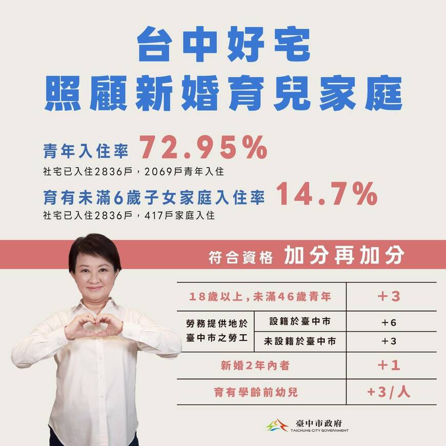 近期媒體報導,中央住都中心年底將釋出 1,022 戶婚育宅,但六都中唯獨台中市未列入,引發部分民眾疑惑,台中是不是被「忽略」了?對此,台中市政府都發局指出,其實台中早就走在前面,社會住宅針對育兒友善家庭的加分機制已率先上路多年,目前「台中好宅」中婚育家庭比例高達14.7%,遠超其他城市的新推政策。