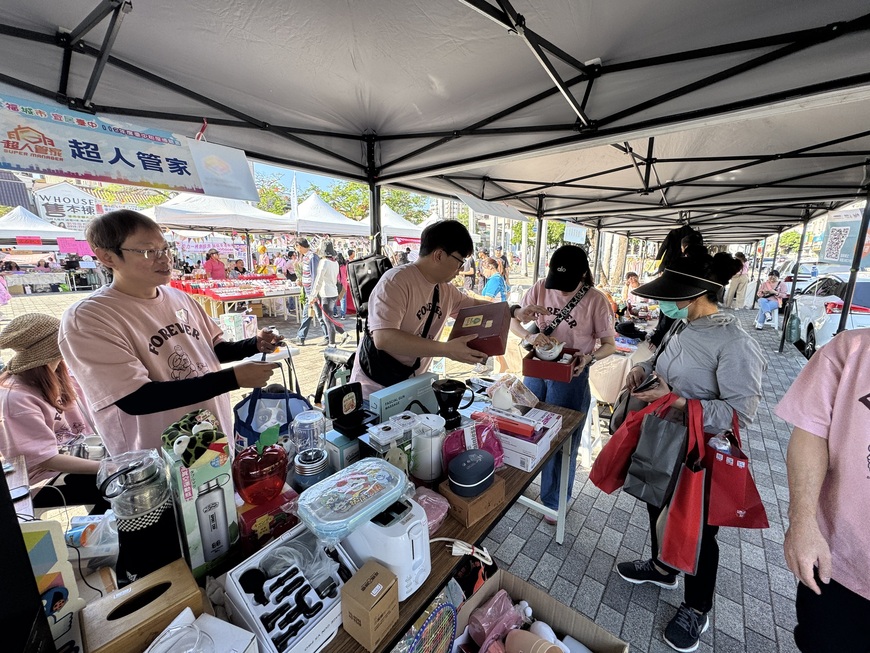 本次活動的亮點之一,是看到了平時與「房、租」打交道的租賃住宅服務業者,積極投身社會公益。在「超人管家」的串聯下,台中市租賃住宅服務商業同業公會動員會員,共同認領了8個義賣攤位。