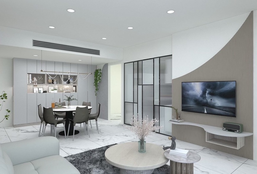 主要建材:義大利薄板、系統板、造型格柵、玻璃、造型牆