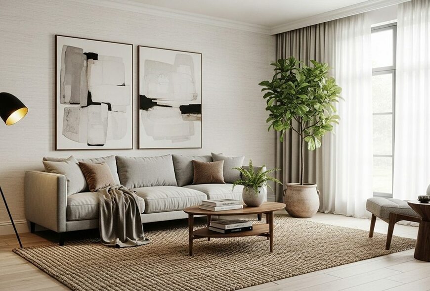 使用落地窗簾、落地燈或大型綠植拉高視覺焦點。