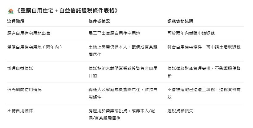 許多民眾在重購自用住宅用地後,會考慮透過「自益信託」管理財產,但卻擔心是否會因此失去土地增值稅退稅資格。屏東縣財稅局最新提醒,只要信託期間土地上房屋仍供委託人本人、配偶或直系親屬居住,且信託目的不違反自用住宅用地規定,即可依法享有退稅,重購退稅資格不會因此喪失。