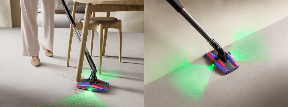 PencilVac™ Fluffycones鉛筆吸塵器配備Fluffycones™四錐全向吸頭,擁有360度靈活轉向技術,能輕鬆繞過桌椅、深入狹小縫隙,清潔時更可平貼地板,輕鬆深入低至75毫米的低矮家具底部,有效清潔床底、沙發下方等傳統吸塵器難以觸及的位置。同時採用無側邊蓋設計,使滾刷可直接貼緊邊緣,真正實現無縫貼邊清潔,並搭載雙向光學探測系統,運用吸頭所配備的雙向LED燈光投射技術,讓地面上的隱形微塵清晰可見,確保每一次清掃都能一步到位。針對長髮及寵物毛髮的日常清潔挑戰,Fluffycones™四錐全向吸頭同樣搭載防纏繞導流設計,實現毛髮零纏繞 的技術突破。透過四個雙向旋轉的錐形滾刷以及尼龍纖維整齊排列設計,精確捲起並快速分離長髮,引導毛髮從滾刷尖端脫離,精準吸除毛髮同時有效解決纏繞問題。