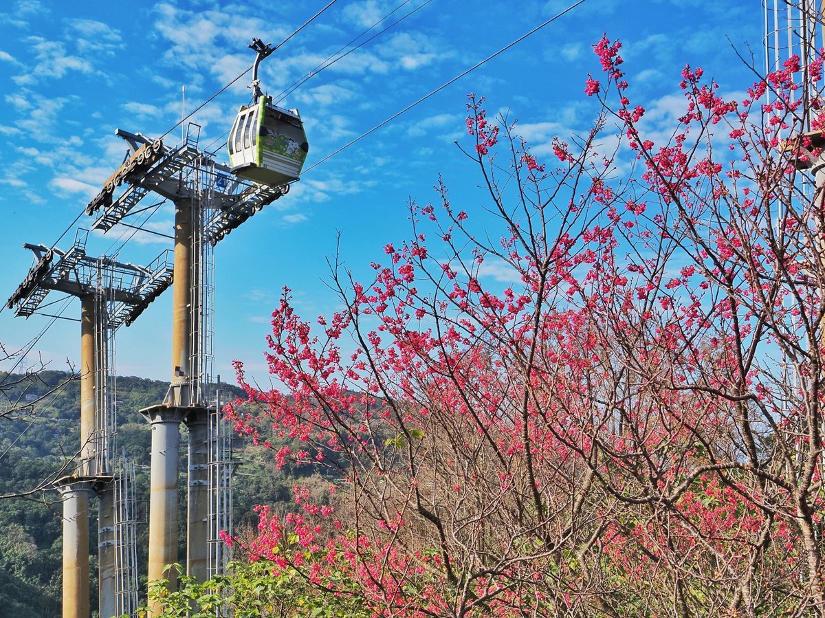 近期貓纜「指南宮站」附近的櫻花陸續綻放,一出站即可看見粉色櫻花盛開,為風景區迎來春日喜氣,預計山頂上的櫻花將在2月底至3月上旬接序綻放,成為春季賞花的亮點。