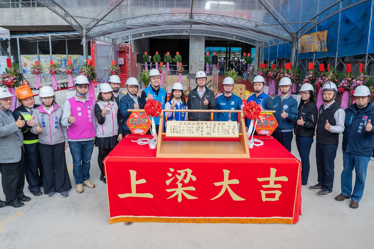 桃園市長張善政今(20)日主持桃園區正光路公辦都市更新上梁典禮,現場也開放社會住宅1房、2房、3房樣品屋參觀。這是桃園市政府首件自辦興建公辦都更案,基地面積0.84公頃,與南側已招商完成的正光花園新城海砂屋公辦都更基地合計共1.6公頃,將成為舊司法園區街廓更新再生的指標性工程。