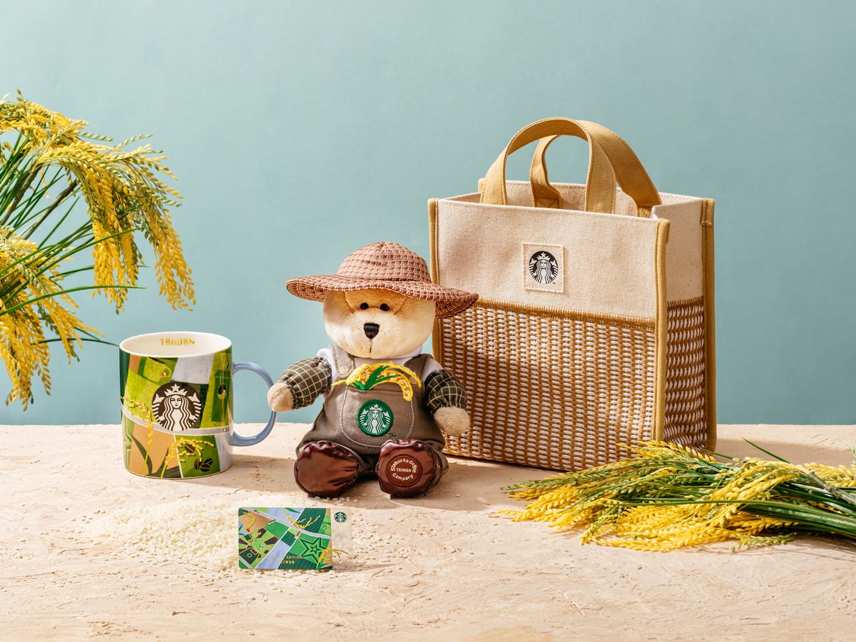 為歡慶「苑裡稻香門市」盛大開幕,星巴克特別推出門市限定商品系列。「苑裡稻香馬克杯」以稻田與鄉間小路為靈感,融合星巴克經典元素設計出稻田彩繪圖樣,星星、咖啡杯、咖啡豆與 Bearista 熊夥伴活潑地點綴於田野之中,陪伴顧客於日常中啜飲一刻靜謐。馬克杯內飾以稻穗勾勒「TAIWAN」字樣,畫面更以單隻稻穗點綴,傳遞豐收意象,展現細膩層次與溫度;將稻田與鄉間風景濃縮於卡面「苑裡稻香隨行卡」, Bearista 熊夥伴置身稻田彩繪中,特別採用網印金工藝細緻描繪,閃耀的金色匡線彷彿陽光灑落金黃稻穗,為整體畫面增添層次與質感,傳遞豐收的溫暖氛圍。期盼顧客使用時,能感受到源自土地的質樸力量與片刻寧靜。