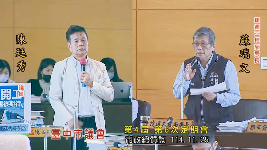 無黨籍市議員陳廷秀在定期會總質詢中關切捷運藍線推進時程,特別詢問海線高架化工程的啟動時間。蘇瑞文局長回應表示,捷運藍線機電統包工程已於6月26日開工,而各界關注的高架段(B1-B8車站)細部設計正穩步推進,5月完成決標後,已陸續完成期中報告審查與廠商說明會,目前進入期末報告審查關鍵階段。