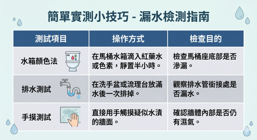 - 現況說明書: 簽約前務必仔細核對房仲提供的《建物現況說明書》,確認屋主是否有勾選「是否有漏水情形」。