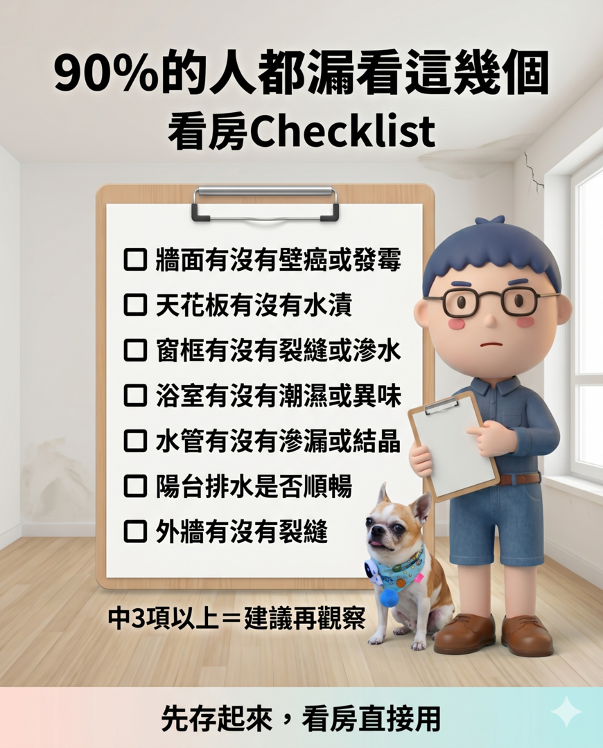 這份清單能幫你排除掉 80% 以上的明顯問題。如果還是不放心,建議在進入簽約階段前,找專業的驗屋公司使用紅外線顯像儀進行深層檢測。