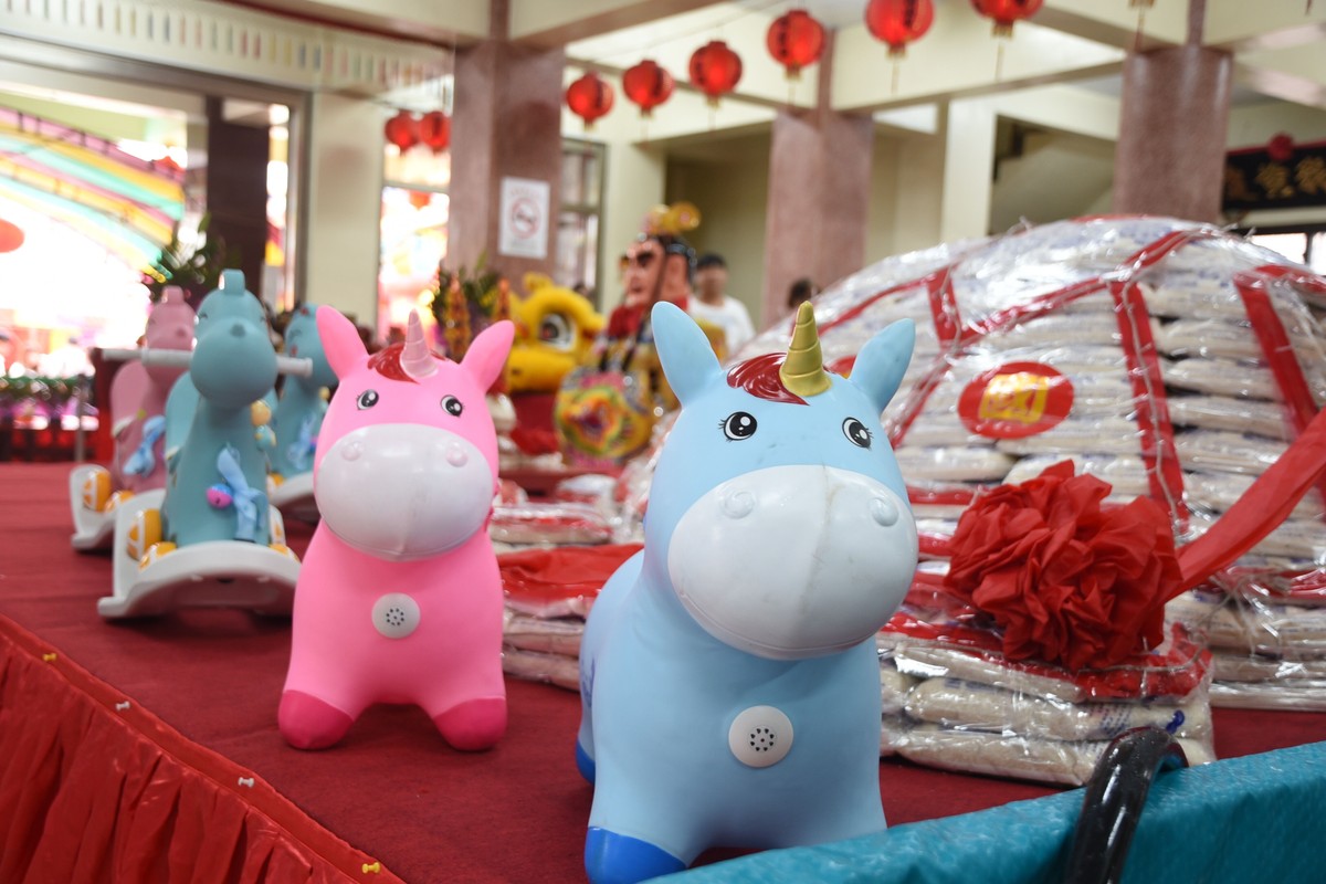 此外,廟方也規劃時段,廣邀幼兒園進殿參訪千斤大米龜,讓孩童近距離認識傳統民俗文化;並與警察局合作,運用「百年同心乖乖」製作藍龜及紫龜,結合擲筊活動宣導交通安全觀念,將文化傳承與生活教育結合,寓教於樂。