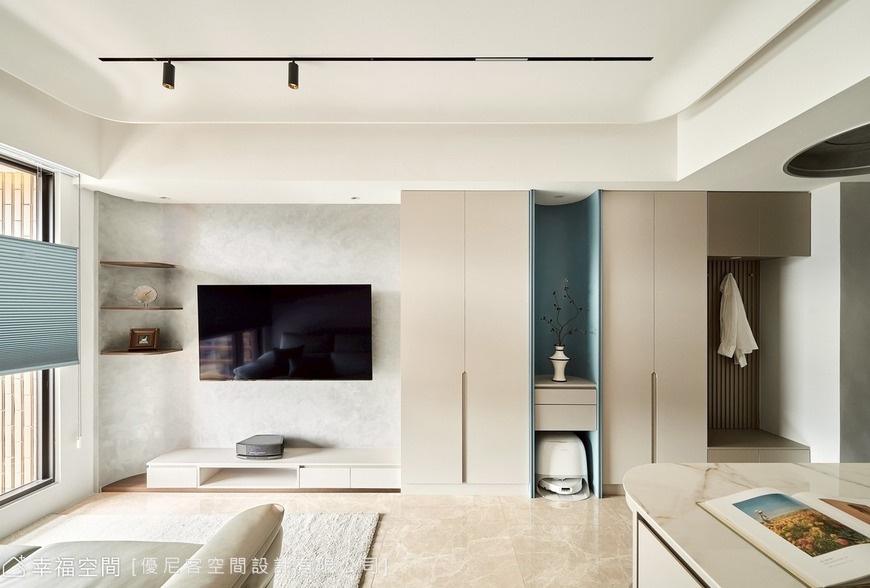 隱藏式收納與圓弧光影的對應,象徵靜謐中的溫柔流動與生活質感的隱然展現。