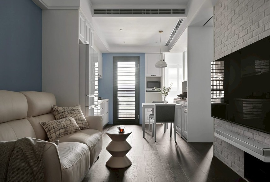 以屋主喜愛的美式風格做設計,另外設計重點則特別著重空間感的通透與採光運用。
