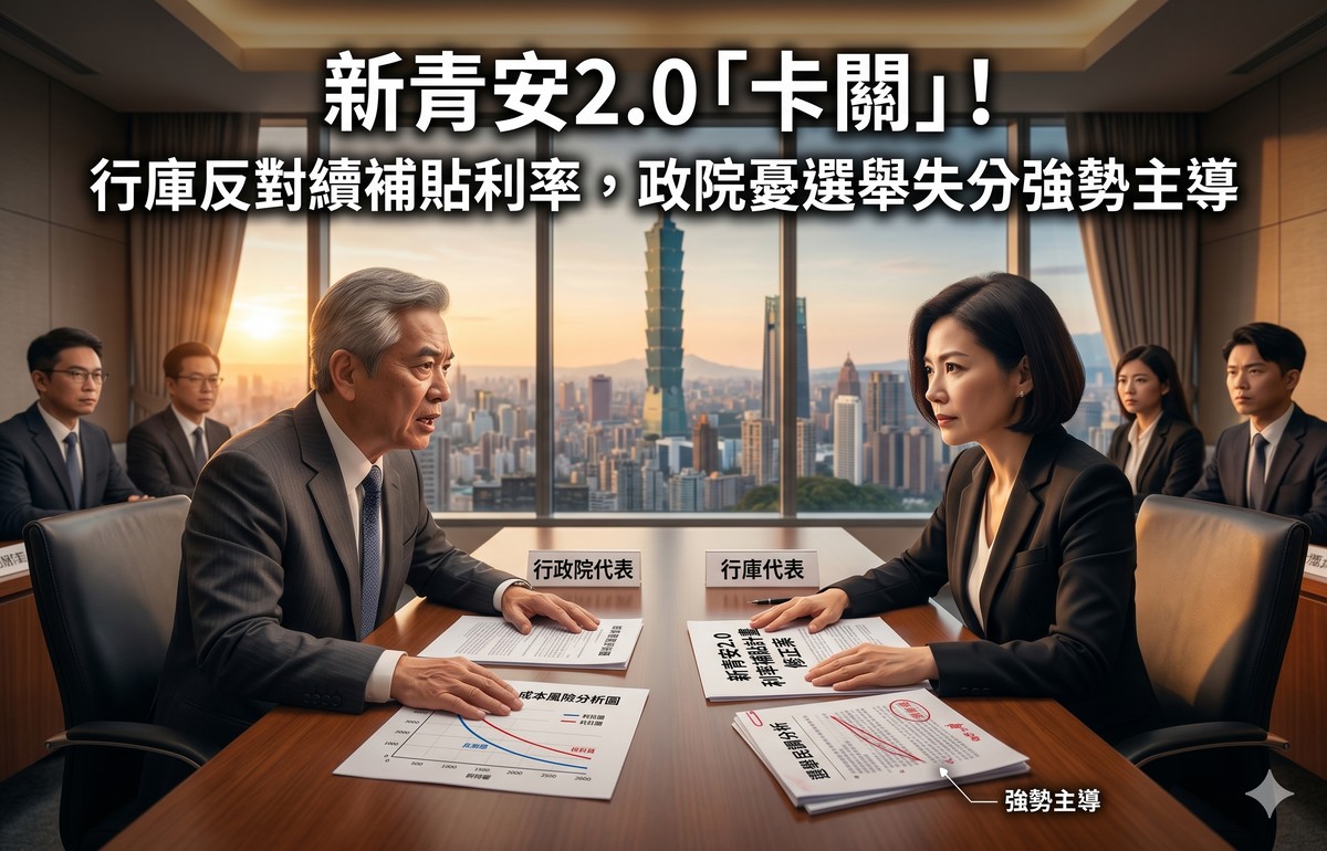 新青安2.0卡關的關鍵在「利率補貼」行庫一面倒反對,政院憂選舉失分強勢主導。五大面向已有共識:利率2.3%、寬限期縮至3年、新增80條款,而40年、8成的優惠條件則維持不變。行庫建議補貼改採「事後申請制」,由內政部直接撥付給房貸戶。距離7月底落日僅剩3個多月,新青安2.0的最終版本能否在選舉壓力與財政紀律之間取得平衡,首購族都在看。