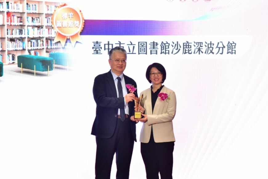 走進圖書館,除了書香,還能感受到電影光影、社區溫度與創意激盪。台中市立圖書館沙鹿深波分館,正是這樣一座顛覆傳統印象的公共圖書館。憑藉獨具特色的電影主題館藏、跨界閱讀策展,以及深耕地方的創新服務模式,沙鹿深波分館榮獲教育部第三屆「圖書館事業貢獻獎—標竿圖書館獎」,這項被譽為「圖書館界奧斯卡」的最高榮耀,昨(16)日在國家圖書館舉行頒獎典禮,由館長曾惠君代表受獎,為分館多年耕耘寫下重要里程碑。