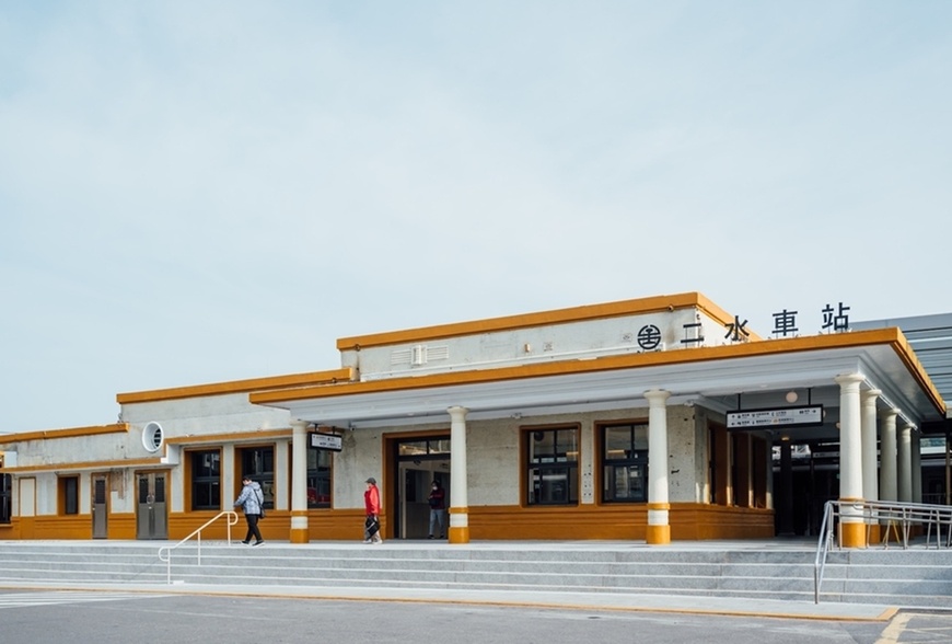 ▲改造後的二水車站,洗去過往陳舊陰暗的印象,原本被遮蔽的裝飾藝術(Art Deco)建築語彙:如迴廊式落柱、水平飾線與長方形窗框,重新展現在人們眼前,展現歷經歲月洗鍊的韻味。(圖片提供/台灣設計研究院)