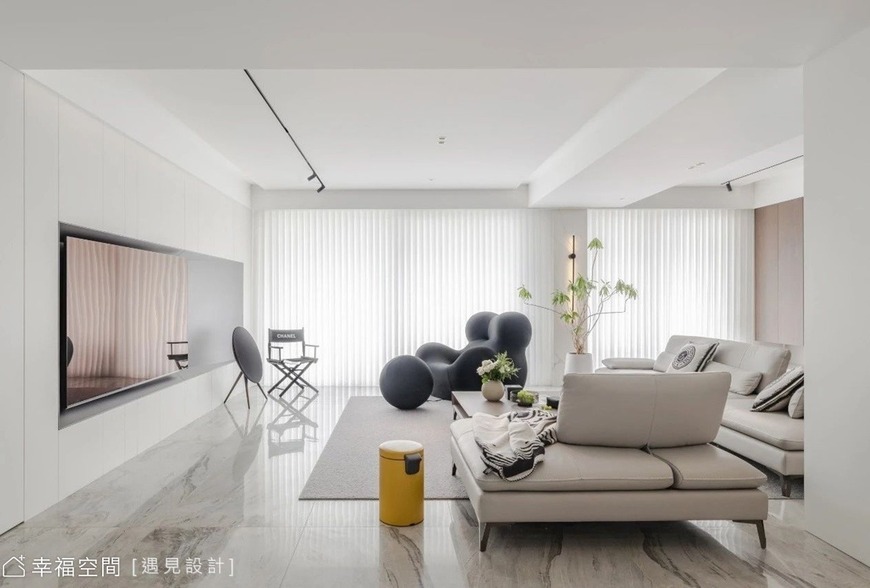 空間以低彩度材質搭配溫潤木質元素,展現簡約卻不冷感的現代風格。